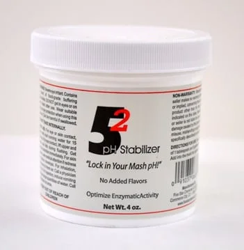 Never worry about pH again! One tablespoon of 5.2 per 5 gallon batch and your water is instantly adjusted to the perfect pH of 5.2, no matter what your starting pH was. It will not add any flavors to your mash water whatsoever. 5.2 optimizes the enzymatic activity of your malt, helps to clarify the wort, and may even help to raise your starting gravities. Also, using 5.2 in the boil will give you more consistent hop usage, and will also keep hard water salts in solution, which will result in less scaling in your heat exchangers, fermenters, and kegs. If you are doing all-grain you add it to your mash water – 1 tablespoon per 5 gallon batch regardless of mash water volume. You do not need to add any extra to your Hot-Liquor tank or Boil Kettle.